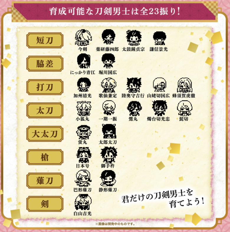 刀剣乱舞のたまごっち『とうらぶっち』の刀剣男士一覧